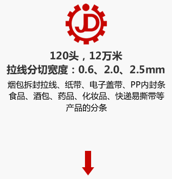 效果展标LSJ60头12万米拉线分条手机登录,主要用来分条收卷12万米的烟包拆封拉线,具有自动化程度高,生产效率高,产品精度高等优点。参照国内外优先技术研制,属于国内领先拆封拉线产品的专用设备